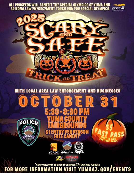 Celebrate Halloween the safe and fun way at the Yuma Police Department’s annual Scary & Safe event. This family-friendly evening is designed to give kids of all ages a safe place to enjoy Halloween festivities.