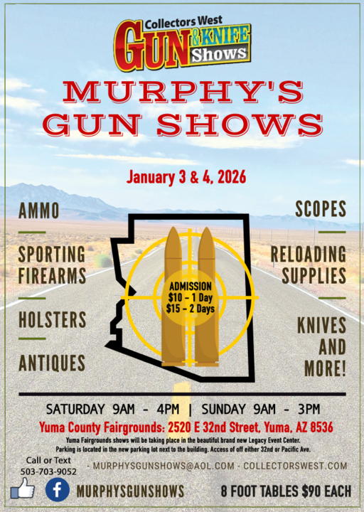 The Collectors West Gun & Knife Show, presented by Murphy's Gun Shows, returns to the Yuma County Fairgrounds to kick off the new year!